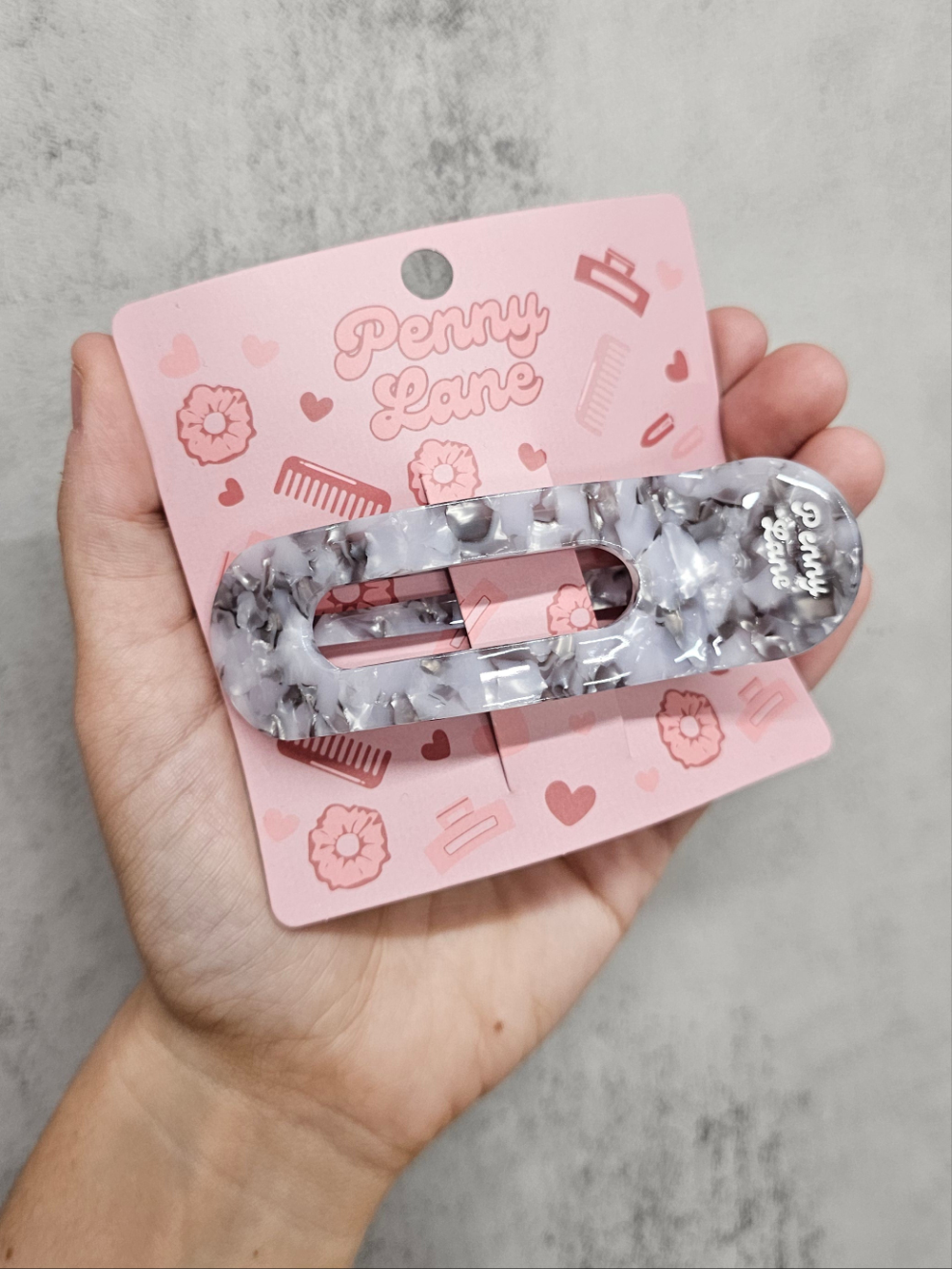 Effortless style meets all-day comfort. Our Lay Down Flat Claw Clip is designed with a sleek profile that allows you to lean back, lounge, or work without the usual bulk of traditional clips. Made from 100% premium acetate, it’s lightweight yet durable, offering a smooth, glossy finish with a unique marbled pattern that makes every piece one-of-a-kind.