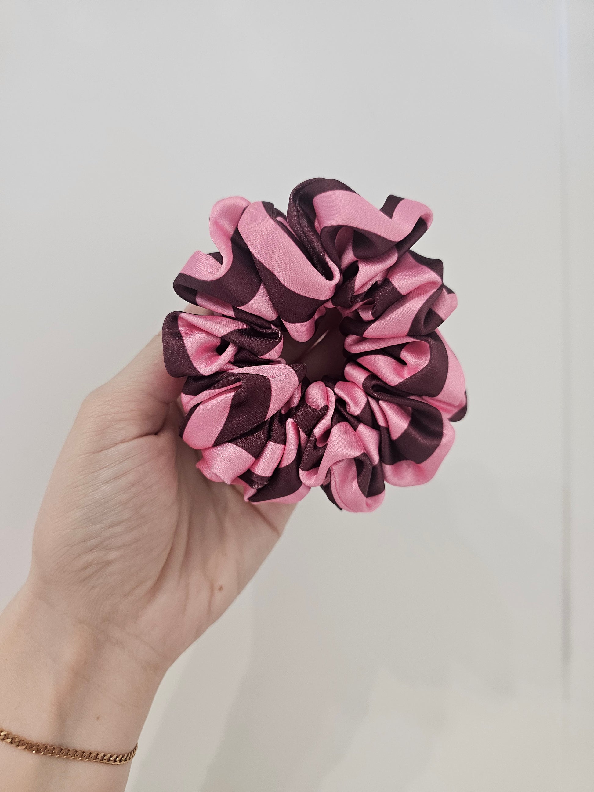 Burgundy and Pink stripe Luxury Satin MIDI Hair Scrunchie