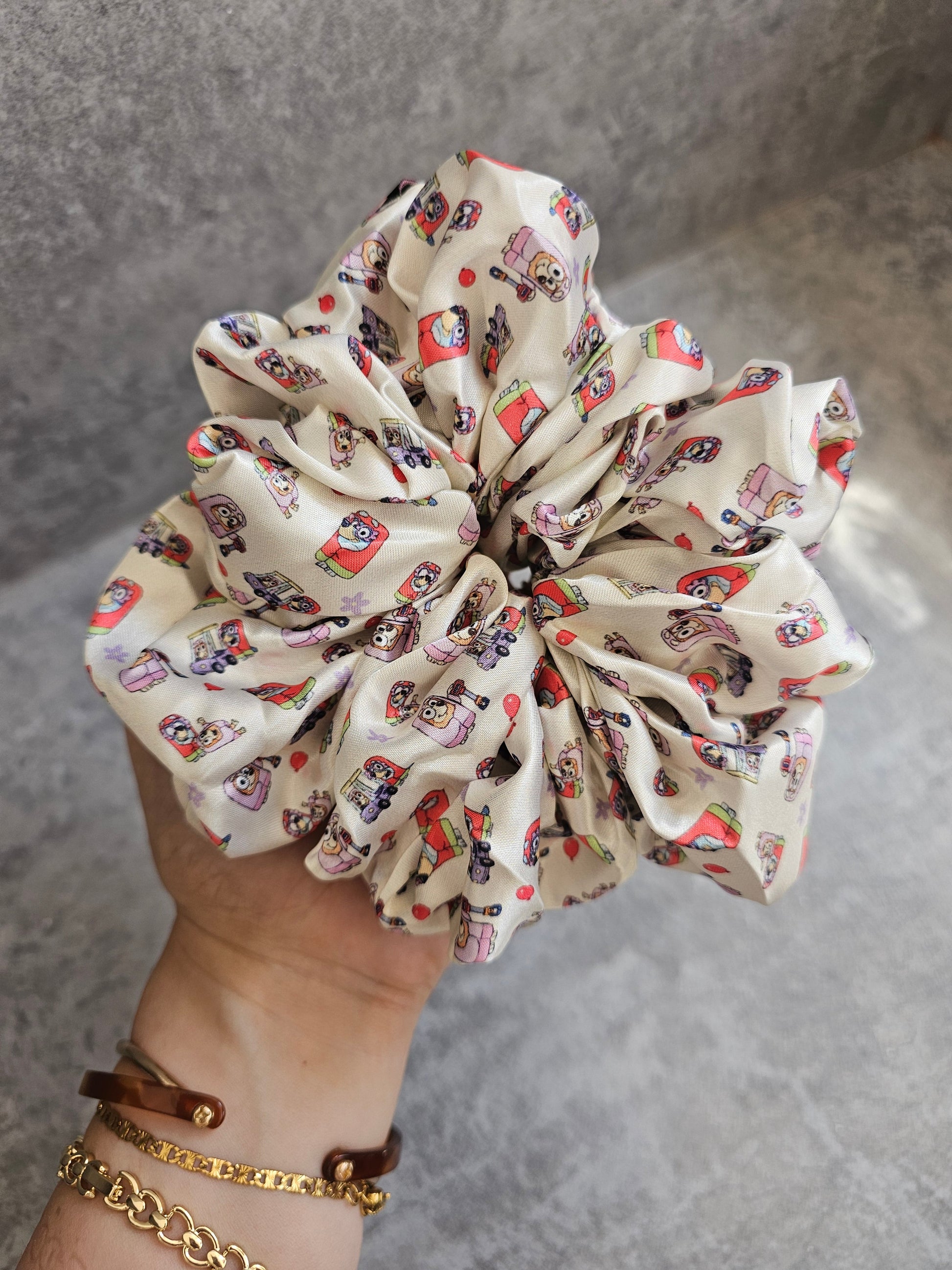 Granny dogs satin XL hair scrunchie