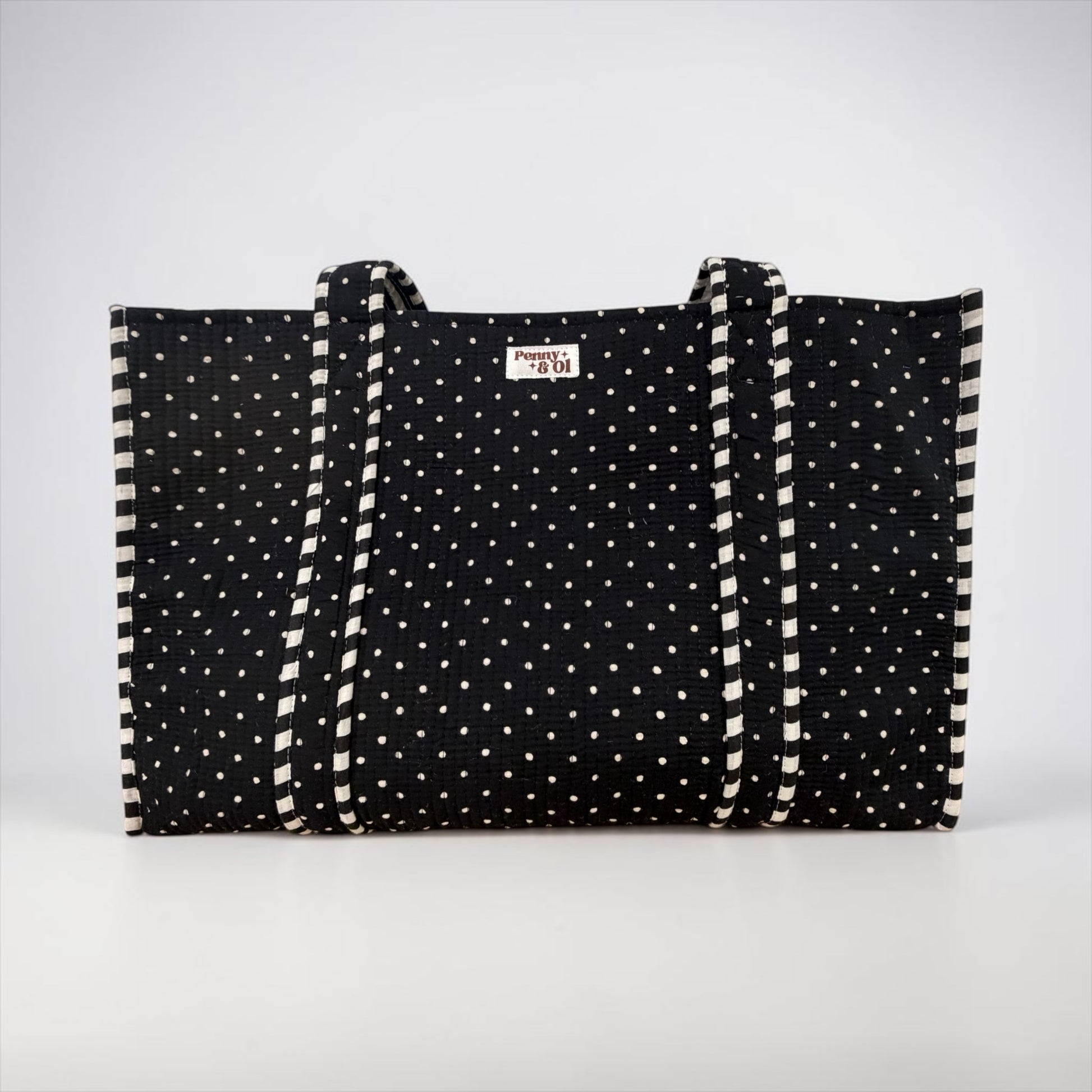 Black polka dot REVERSIBLE Large Cotton Tote Bag, handmade tote bags